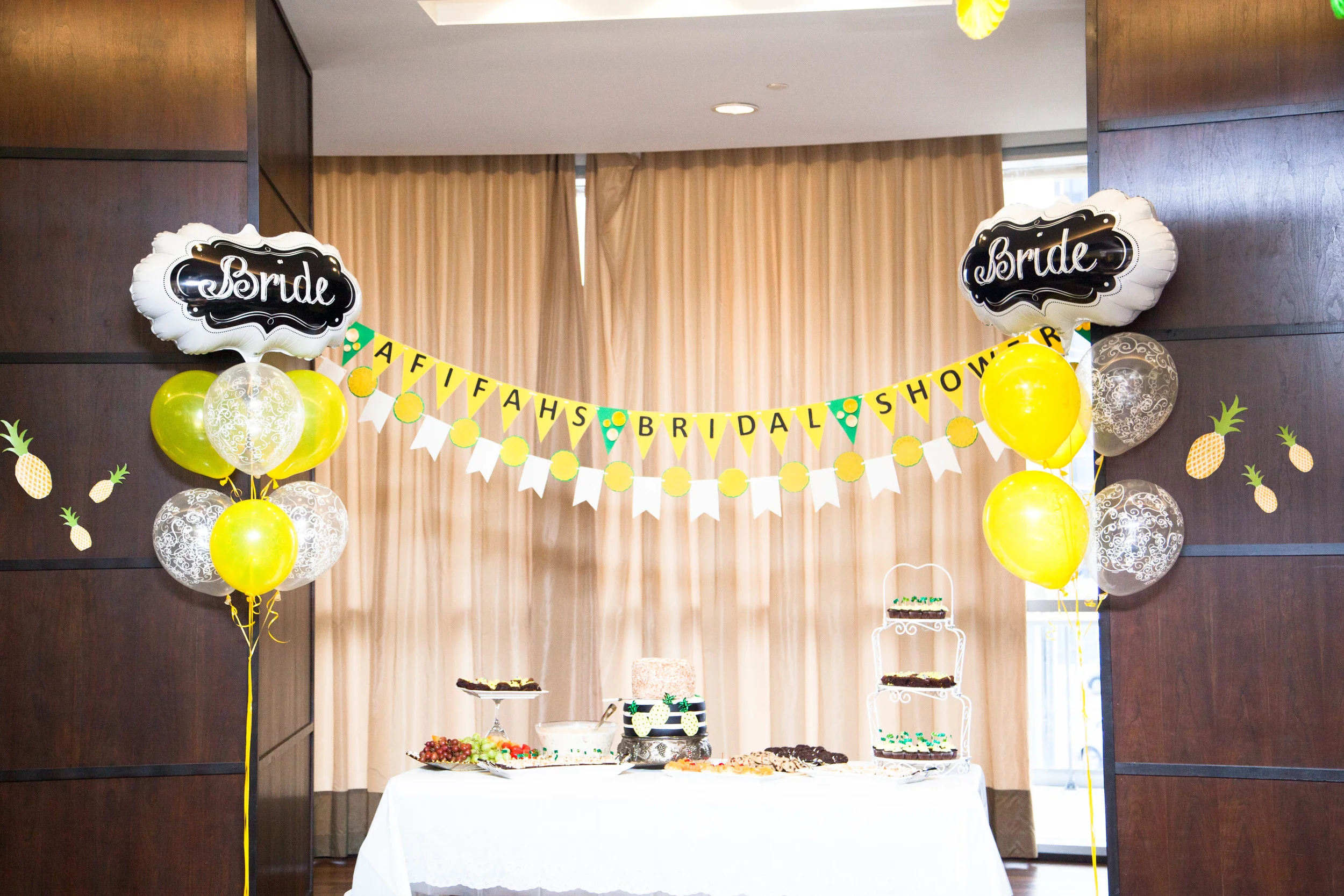 A few weeks ago I had the delight of covering Afifah's bridal shower. It was a unique "Pineapple themed" bridal shower and it was refreshing to see such an "outside of the box" concept. My favourite part about capturing this event was getting to witness a funny bridal shower game that gave winners gifts and then gave other winners the opportunity to steal gifts from previous winners. It was not the nicest thing for the first winners, but it made for some hilarious moments and was one of the highlights of the bridal shower. Due to client privacy I am only able to share detail shots from the event. Enjoy!