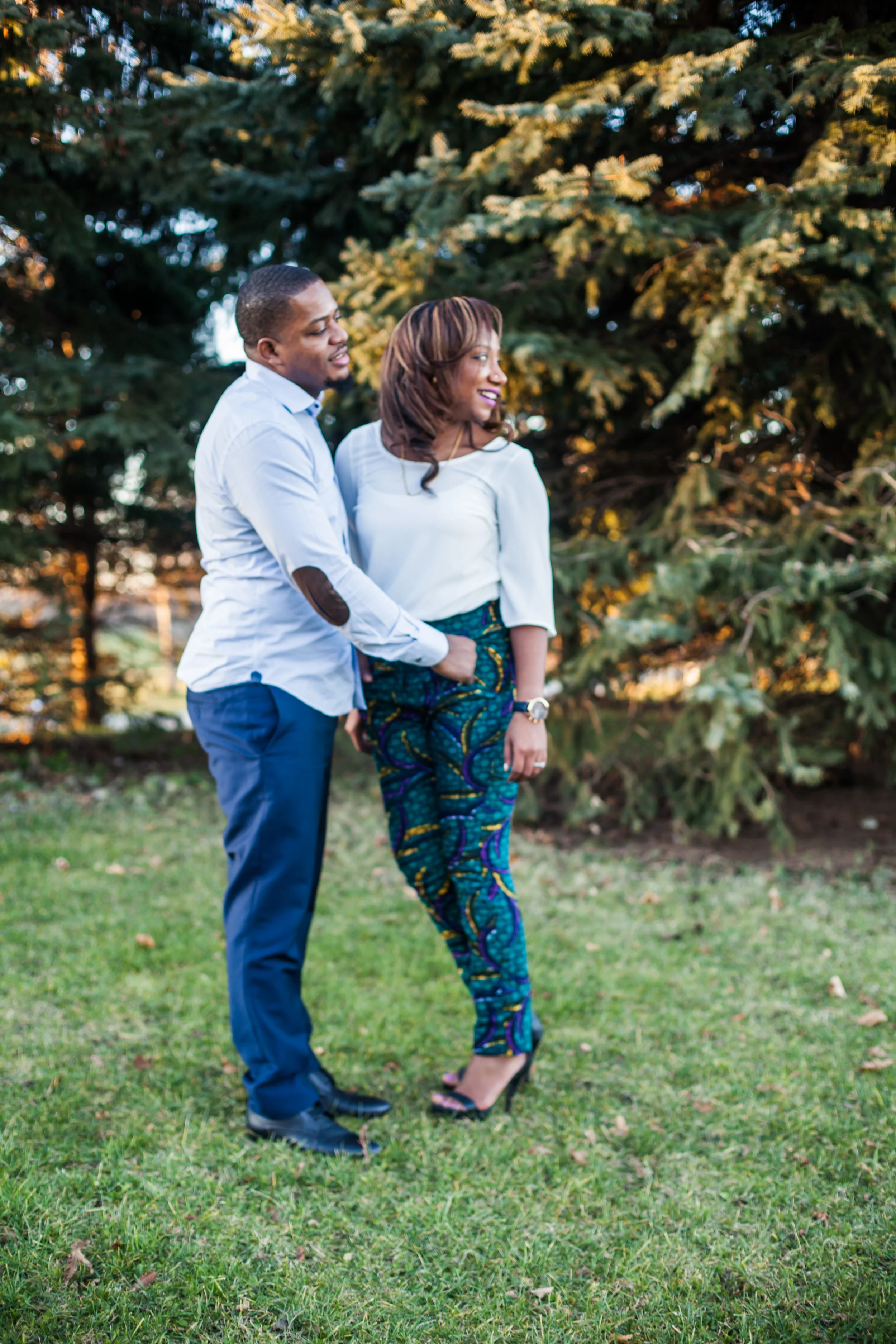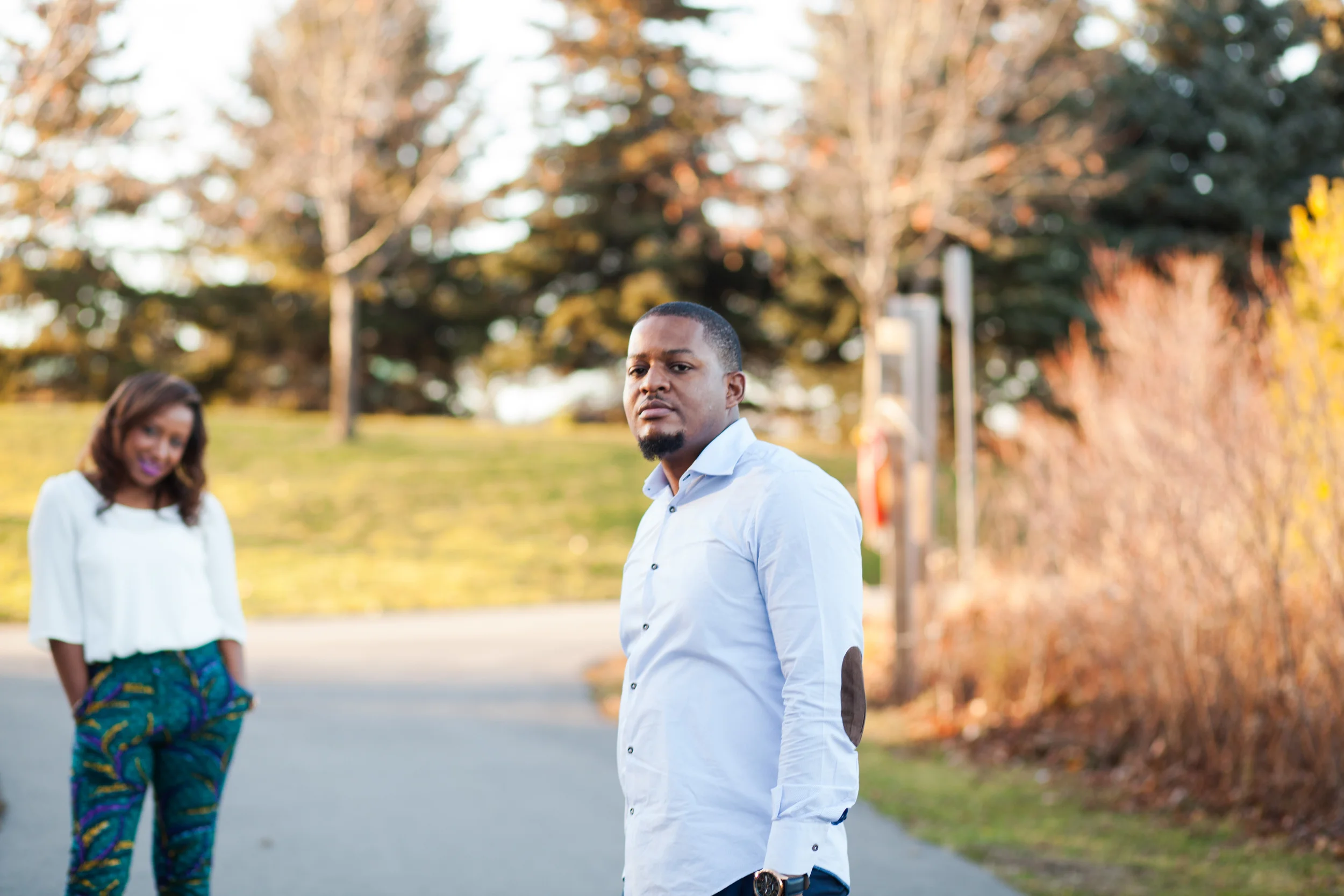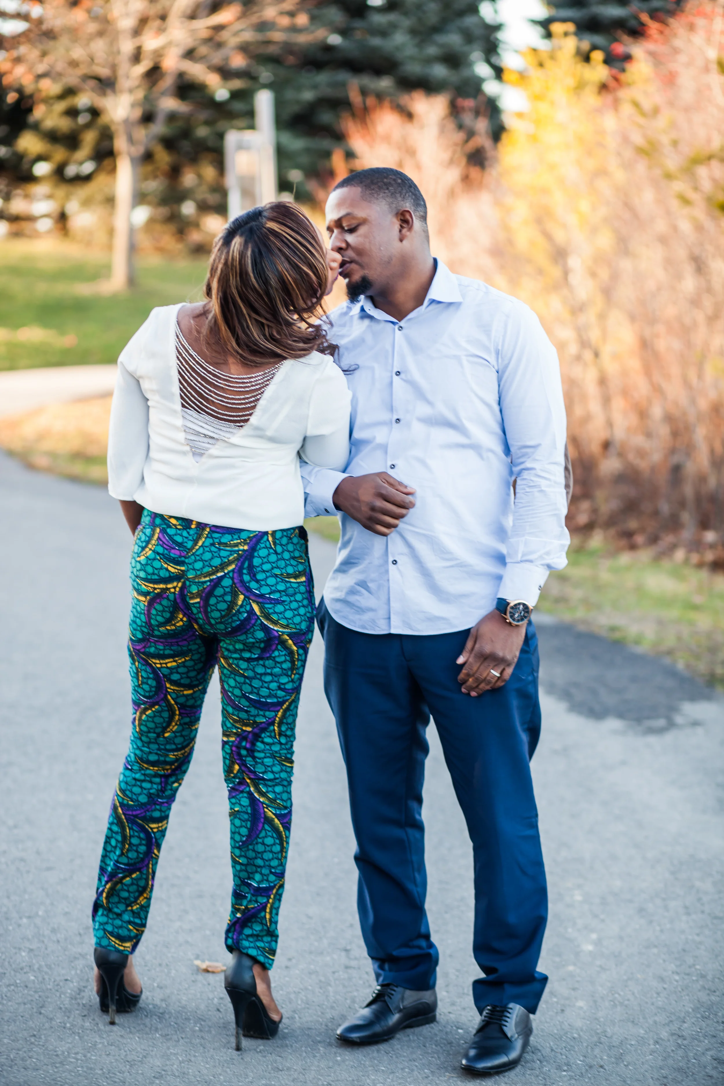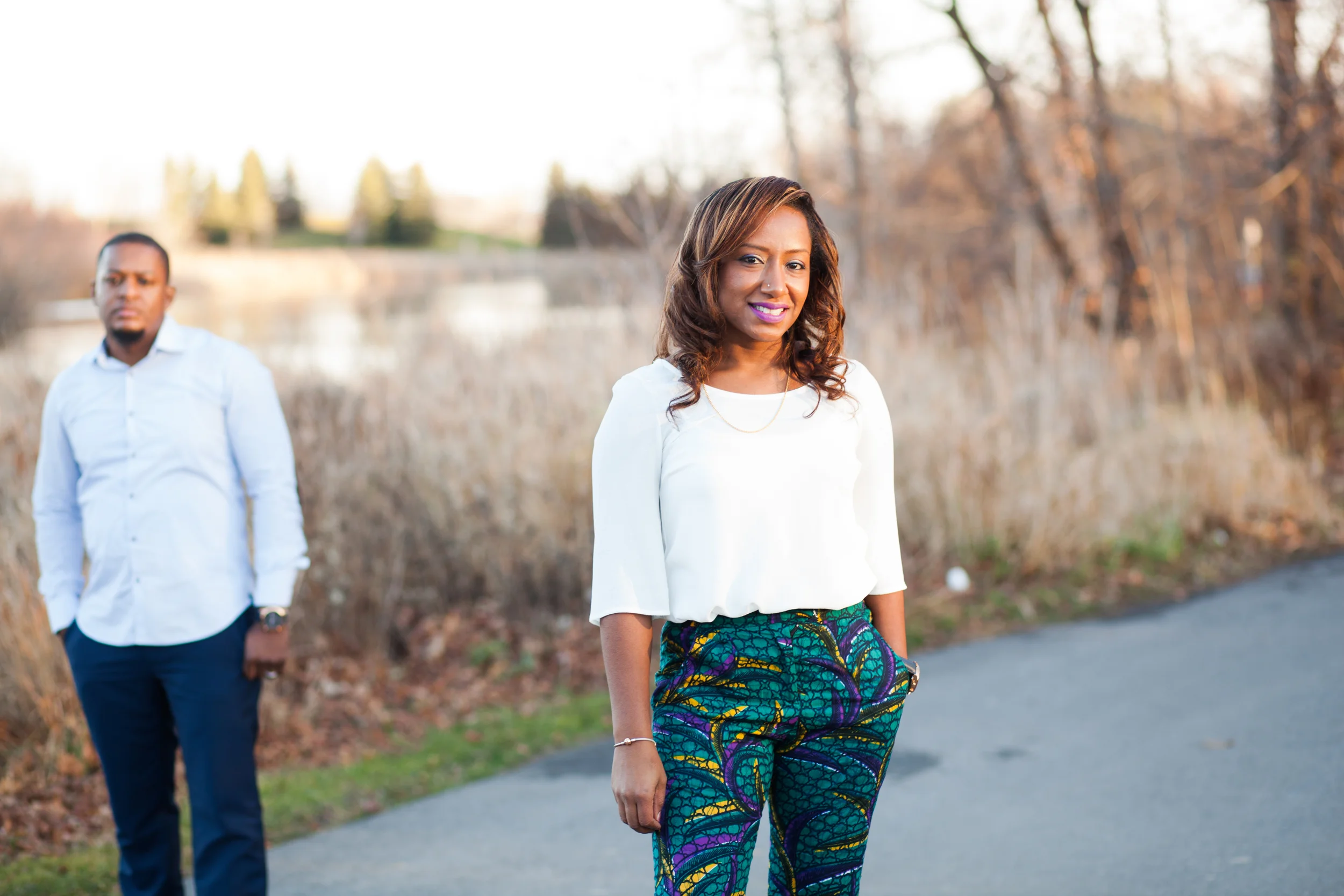I had the wonderful opportunity of photographing Nadhia and Tre's post-wedding shoot a couple of weeks back. I previously had the pleasure of capturing Nadhia's pre-wedding event (see my blog post on that here) and was super excited to do this shoot. Nadhia and Tre's actual wedding took place in Jamaica. How fun is that! So when they returned home they wanted to do a chilled out post wedding shoot which we ended up doing at Milliken Park on the northern edge of Scarborough. Funny story about this particular shoot is that I just had a tooth pulled that morning and was high on medication, but their shoot allowed me to forget the pain I was in for a brief moment, although it unfortunately all returned the next day :( . Anyway I have to say I really loved the outfits this couple chose to wear to their shoot! Especially those African print pants Nadhia was rocking!