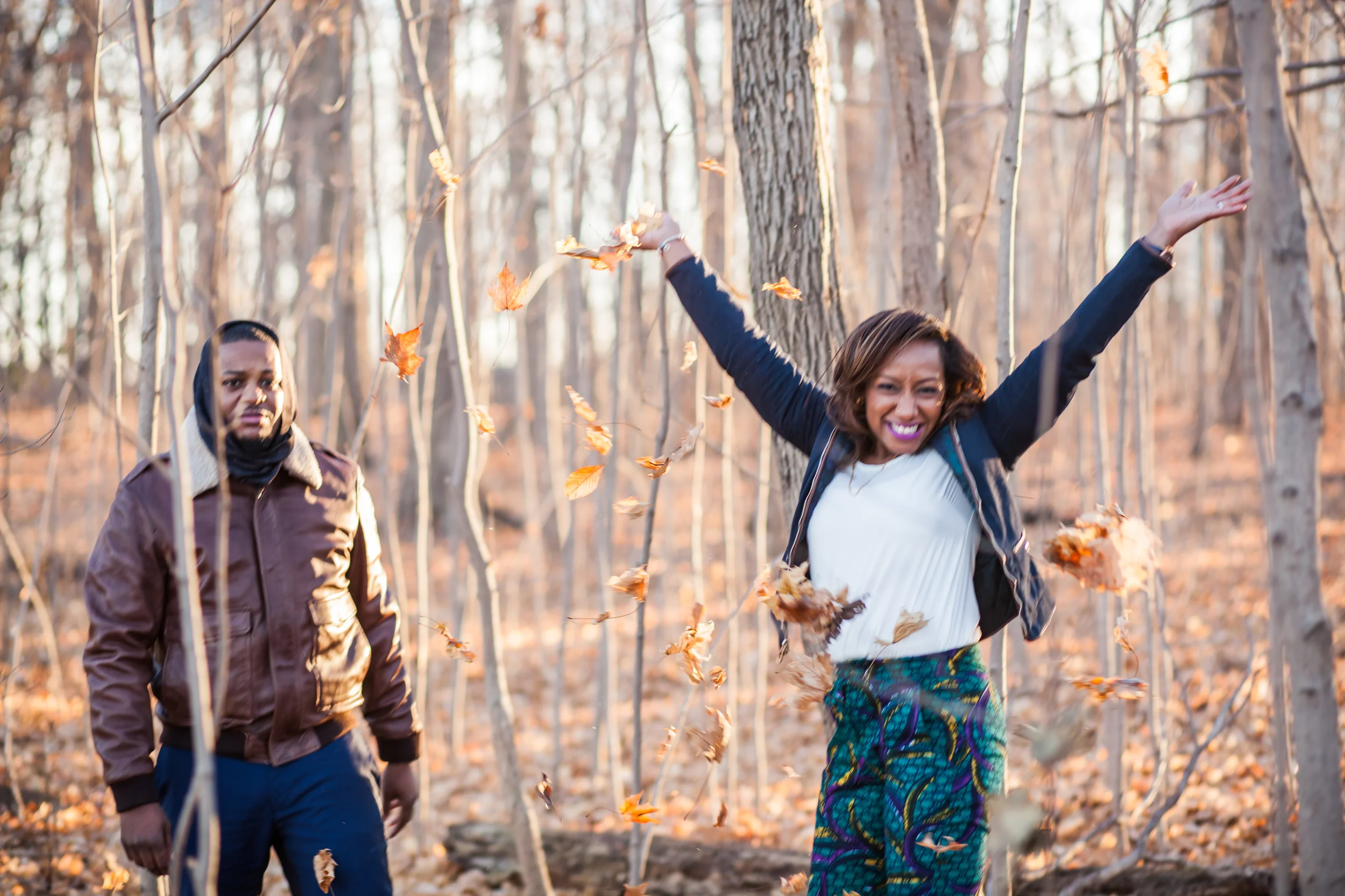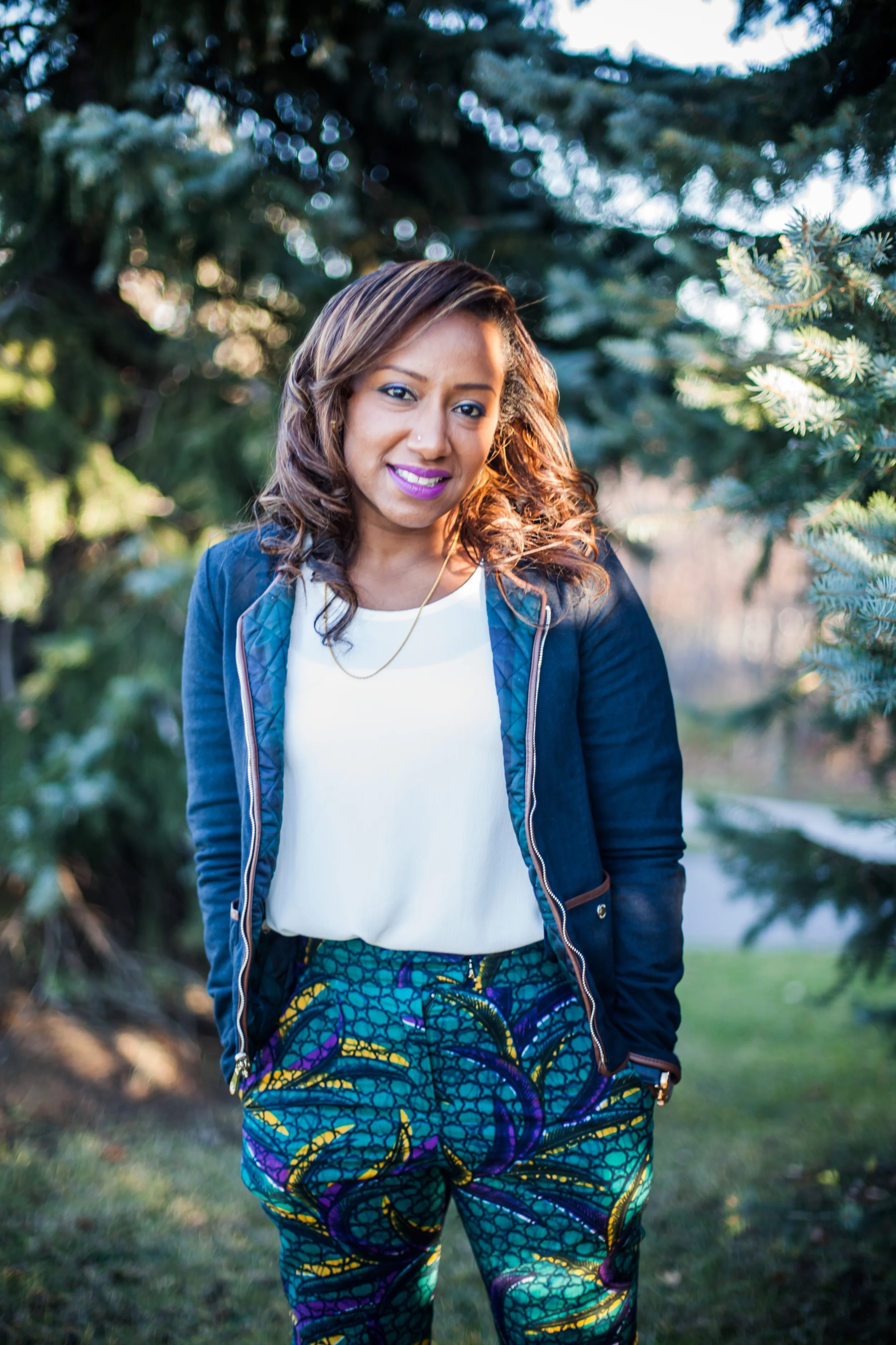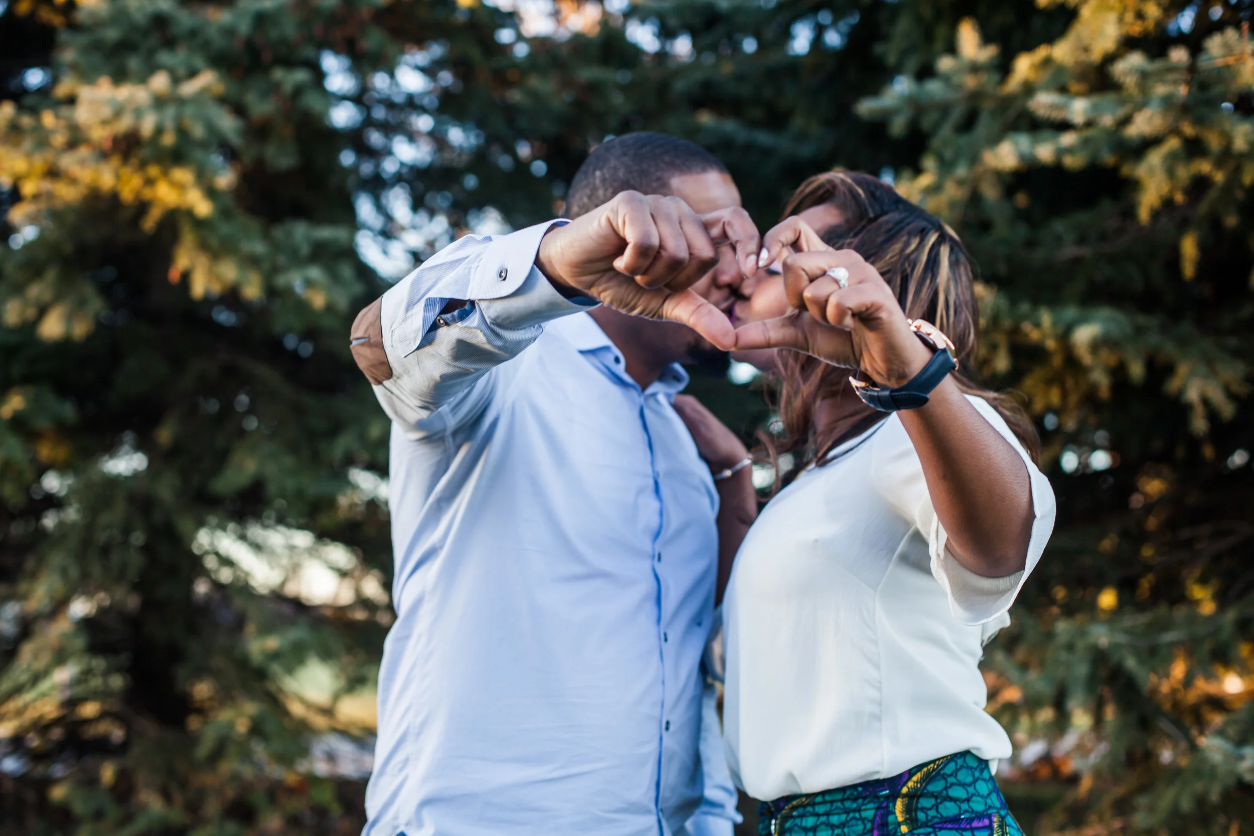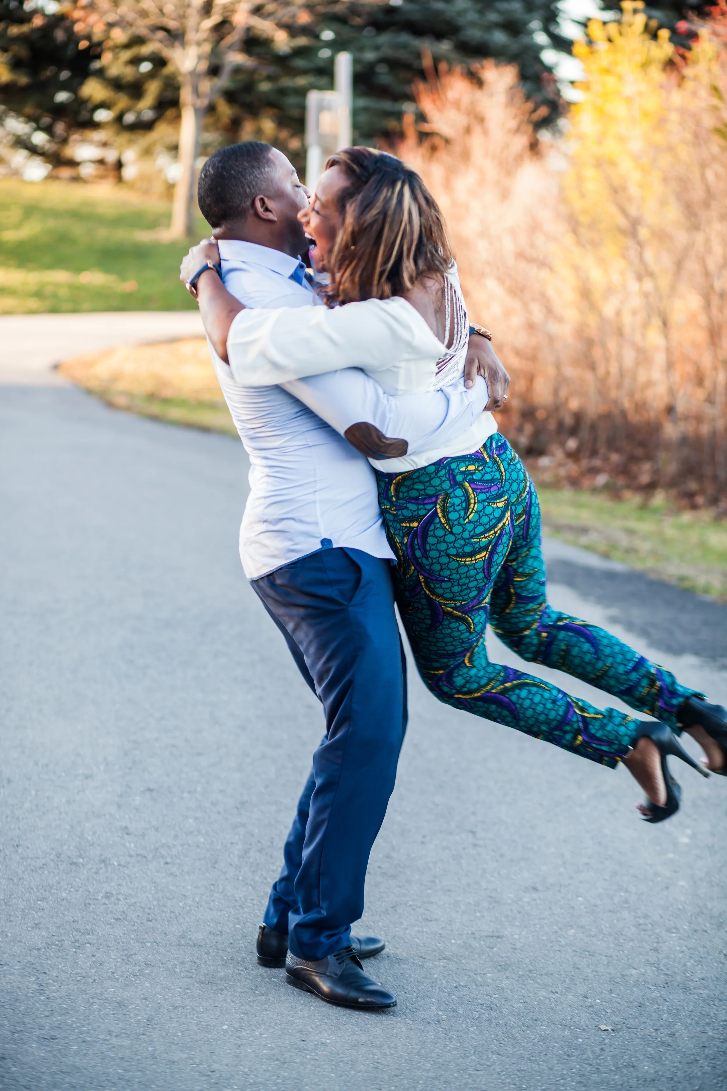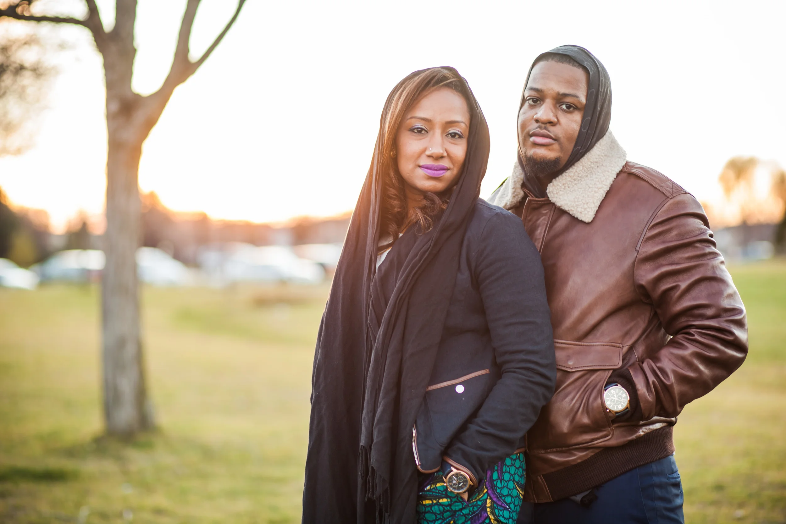 I had the wonderful opportunity of photographing Nadhia and Tre's post-wedding shoot a couple of weeks back. I previously had the pleasure of capturing Nadhia's pre-wedding event (see my blog post on that here) and was super excited to do this shoot. Nadhia and Tre's actual wedding took place in Jamaica. How fun is that! So when they returned home they wanted to do a chilled out post wedding shoot which we ended up doing at Milliken Park on the northern edge of Scarborough. Funny story about this particular shoot is that I just had a tooth pulled that morning and was high on medication, but their shoot allowed me to forget the pain I was in for a brief moment, although it unfortunately all returned the next day :( . Anyway I have to say I really loved the outfits this couple chose to wear to their shoot! Especially those African print pants Nadhia was rocking!